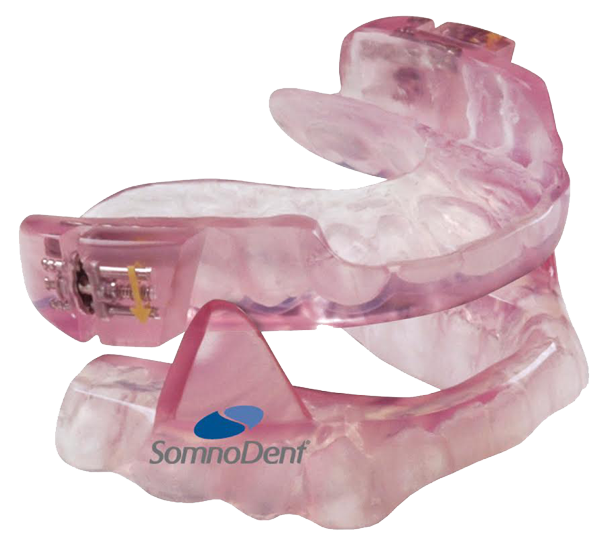 SomnoDent® sleep appliances consist of a group of oral appliances that shift the jaw forward during sleep. This works by increasing the pressure on soft tissue and muscles in the airway to keep the patient's throat open and clear throughout sleep. The appliance is custom fit and made from high quality materials.